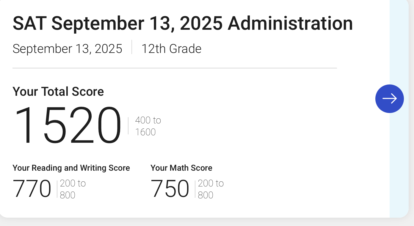 Didn't raise my total for this retake, only increased the English score by 10. So in the time I spent as your student, I raised my English by 100 points! I also now have a superscore of 1550, which I feel good enough about not to take it again in October.