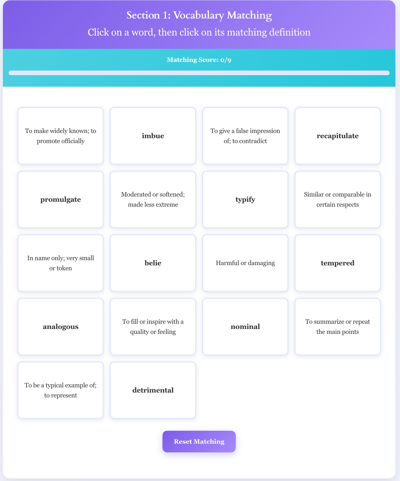 | EPITOMIZE | To be a perfect example of | Combined: epitomize + epitome |
