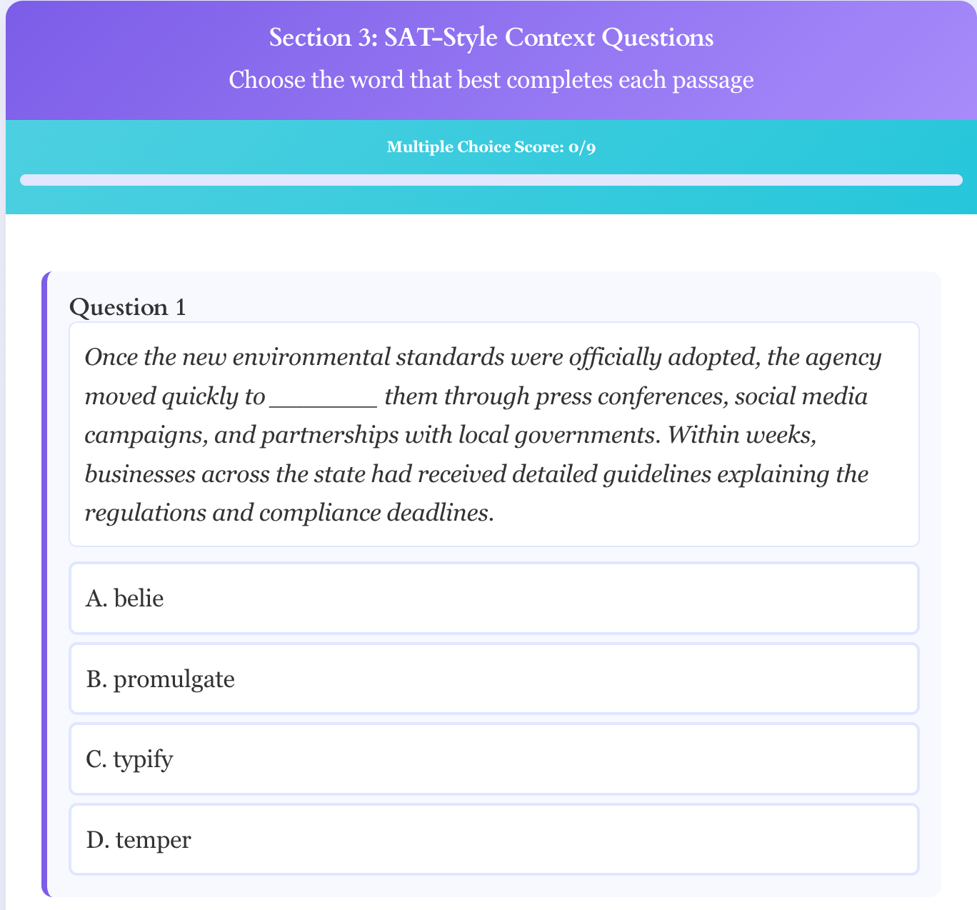 | BELIE | To contradict or give a false impression | May '25, Oct '25 PSAT, Dec '25 |